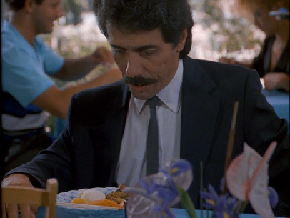 Then we cut to evening, and Gina and Sean are having diner. The exterior establishing shot was likely stock footage, possibly still from the Miami area. If you recognize it please let me know at cglide@floridamovielocations.org