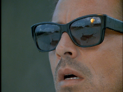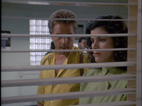 Then we see the opening montage. This is the 7th variation of the montage that we see (not counting slight differences in length of segments and differing colors on the Miami Vice logo). This is very similar to what will become the standard season 3 opening montage but instead of seeing the Testarossa on Collins Ave., we see a cut of Bal Harbor.